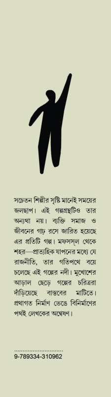 সচেতন শিল্পীর সৃষ্টি মানেই সময়ের জলছাপ। এই গল্পগ্রন্থটিও তার অন্যথা নয়। ব্যক্তি সমাজ ও জীবনের গাঢ় রসে জারিত হয়েছে এর প্রতিটি গল্প। মফস থেকে শহর-প্রাত্যহিক যাপনের মধ্যে যে রাজনীতি, তার গতিপথে বয়ে চলেছে এই গল্পের নদী। মুখোশের আড়াল ছেড়ে গল্পের চরিত্ররা দাঁড়িয়েছে বাস্তবের মাটিতে। প্রথাগত নির্মাণ ভেঙে বিনির্মাণের পথই লেখকের অন্বেষণ।