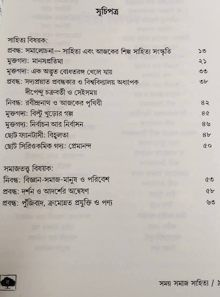 লেখক সময় ও সমাজকে আজকের প্রেক্ষিùতে অনুধাবন করার জন্য বিজ্ঞান ও সমাজের পারস্পরিক সম্পর্ককে বিশেষভাবে গুরুত্বপূর্ণ মনে করেন।বিভিন্ন পত্রিকাতে প্রকাশিত কিছু নিবদ্ধ, প্রবন্ধ, মুক্ত গদ্য আর অপ্রকাশিত কিছু লেখা যা জীবনের নির্যাস থেকে রচিত। সাহিত্যের অ -দেখা দিগন্তের খোঁজের সু স্পষ্ট এই গ্রন্থে।