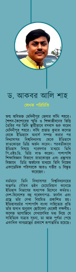 বর্তমানে তিনি বিদ্যাসাগর বিশ্ববিদ্যালয়ের অন্তর্গত গৌরব গুইন মেমোরিয়াল কলেজে ইতিহাস বিভাগের অধ্যাপক হিসেবে কর্মরত। দেশ-বিদেশের বহু গবেষণাপত্র- জার্নাল এবং গ্রন্থে তাঁর লেখা নিয়মিত প্রকাশিত হয়। ইতিহাসচর্চার পাশাপাশি বাংলা সাহিত্যের প্রতি তাঁর অগাধ অনুরাগ ছোটবেলা থেকেই লক্ষণীয়। কলেজ ম্যাগাজিনে লেখালেখির মধ্য দিয়ে যে সাহিত্যিক যাত্রার সূচনা, তা আজ পূর্ণতা পেয়ে একাধিক কাব্যগ্রন্থের প্রকাশে রূপান্তরিত হয়েছে