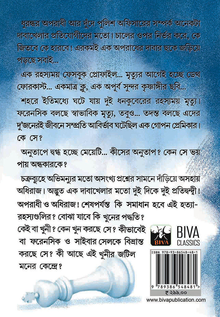 দাবার ছকে জড়িয়ে সবাই... সাদা রঙের রাজার অজান্তেই বিপজ্জনকভাবে তার দিকে এগিয়ে আসছে কালো রঙের রাণী... এক রহস্যময় ফেসবুক প্রোফাইল... মৃত্যু্র আগেই হচ্ছে ডেথ ফোরকাস্ট... একমাত্র ক্লু, এক অপূর্ব সুন্দর কৃষ্ণাঙ্গীর ছবি... কে বা কারা আছে এর নেপথ্যে? কীসের মারণ খেলাতেই বা মেতেছে সে? দুই ধনকুবেরের রহস্যময় মৃত্যু... ফরেনসিক বলছে স্বাভাবিক মৃত্যু, তবুও... অনুতাপে দবগ্ধ হচ্ছে মেয়েটি... কীসের অনুতাপ? কেন সে ভয় পায় অন্ধকারকে? জট বাঁধছে রহস্যের উপর রহস্য...