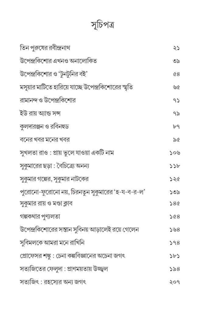 এ বইয়ের বাড়তি আকর্ষণ — রায়বাড়ির লেখকদের ছবি, তাঁদের লেখা বইয়ের বিশদ তালিকা। সারা পৃথিবীর সাহিত্যের ইতিহাসে এমন আরও একটি পরিবারের হদিশ পাওয়া যাবে না, যে পরিবারের প্রায় সকলেই ছোটোদের জন্য কলম ধরেছেন! উপেন্দ্রকিশোর, সুকুমার ও সত্যজিতের সাহিত্য-সৃষ্টি নিয়ে কমবেশি আলোচনা হলেও অন্যদের ক্ষেত্রে একেবারেই হয়নি। আমরা ক-জন কুলদারঞ্জন-সুবিনয় বা সুবিমলদের লেখালেখির খবর রাখি ! জোড়াসাঁকোর ঠাকুরবাড়ির পরেই যে পরিবারের স্থান, সেই পরিবারের সাহিত্যচর্চার খবর সেভাবে রাখা হয়নি। রায়-পরিবারের সাহিত্যচর্চা নিয়ে বইপত্রও ছিল না। সে অভাব এতদিনে পূরণ হল। বইটির প্রচ্ছদ এঁকেছেন দেবব্রত ঘোষ।