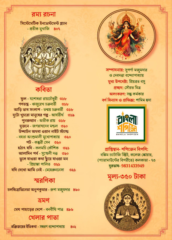 যশোধরা রায়চৌধুরী, ঋজুরেখ চক্রবর্তী, তন্ময় চক্রবর্তী, আর্যতীর্থ, অভীক রায়, জগন্নাথদেব মন্ডল, বহতা অংশুমালী মুখোপাধ্যায়, কস্তুরী সেন, কলমচি কৌশিক, সুস্মেলী দত্ত, প্রিয়াংকা পালিত, মেহেরুননেসা