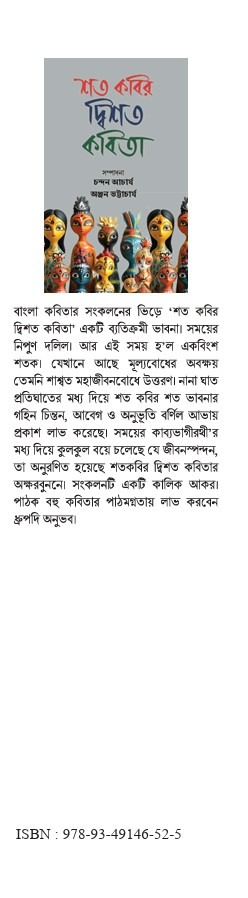 বাংলা কবিতার সংকলনের ভিড়ে 'শত কবির দ্বিশত কবিতা' একটি ব্যতিক্রমী ভাবনা। সময়ের নিপুণ দলিল। আর এই সময় হ'ল একবিংশ শতক। যেখানে আছে মূল্যবোধের অবক্ষয় তেমনি শাশ্বত মহাজীবনবোধে উত্তরণ। নানা ঘাত প্রতিঘাতের মধ্য দিয়ে শত কবির শত ভাবনার গহিন চিন্তন, আবেগ ও অনুভূতি বর্ণিল আভায় প্রকাশ লাভ করেছে। সময়ের কাব্যভাগীরথী'র মধ্য দিয়ে কুলকুল বয়ে চলেছে যে জীবনস্পন্দন, তা অনুরণিত হয়েছে শতকবির দ্বিশত কবিতার অক্ষরবুননে। সংকলনটি একটি কালিক আকর। পাঠক বহু কবিতার পাঠমগ্নতায় লাভ করবেন ধ্রুপদি অনুভব।