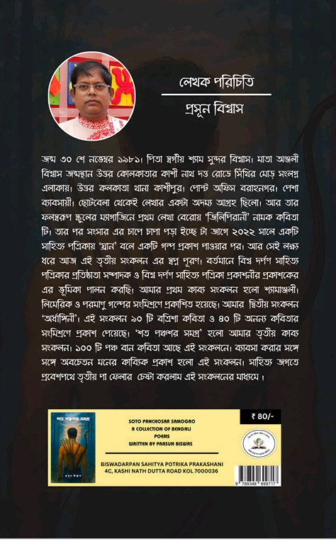জন্ম ৩০ শে নভেম্বর ১৯৮১। পিতা স্বর্গীয় শ্যাম সুন্দর বিশ্বাস। মাতা অঞ্জলী বিশ্বাস জন্মস্থান উত্তর কোলকাতার কাশী নাথ দত্ত রোডে সিঁথির মোড় সংলগ্ন এলাকায়। উত্তর কলকাতা থানা কাশীপুর। পোস্ট অফিস বরাহনগর। পেশা ব্যাবসায়ী। ছোটবেলা থেকেই লেখার একটা অদম্য আগ্রহ ছিলো। আর তার ফলস্বরূপ স্কুলের ম্যাগাজিনে প্রথম লেখা বেরোয় 'জিলিপিরানী' নামক কবিতা টি। তার পর সংসার এর চাপে চাপা পড়া ইচ্ছে টা জাগে ২০২২ সালে একটি সাহিত্য পত্রিকায় 'ঘ্রান' বলে একটি গল্প প্রকাশ পাওয়ার পর। আর সেই লক্ষ্য ধরে আজ এই তৃতীয় সংকলন এর স্বপ্ন পূরণ। বর্তমানে বিশ্ব দর্পণ সাহিত্য পত্রিকার প্রতিষ্ঠাতা সম্পাদক ও বিশ্ব দর্পণ সাহিত্য পত্রিকা প্রকাশনীর প্রকাশকের এর ভূমিকা পালন করছি। আমার প্রথম কাব্য সংকলন হলো শ্যামাঞ্জলী। লিমেরিক ও পরমাণু গল্পের সংমিশ্রণে প্রকাশিত হয়েছে। আমার দ্বিতীয় সংকলন 'অর্ধাঙ্গিনী'। এই সংকলন ৯০ টি বত্রিশা কবিতা ও ৪০ টি অনন্য কবিতার সংমিশ্রণে প্রকাশ পেয়েছে। 'শত পঞ্চশর সমগ্র' হলো আমার তৃতীয় কাব্য সংকলন। ১০০ টি পঞ্চ বান কবিতা আছে এই সংকলনে। ব্যাবসা করার সঙ্গে সঙ্গে অবচেতন মনের কাব্যিক প্রকাশ হলো এই সংকলন। সাহিত্য জগতে প্রবেশপথে তৃতীয় পা ফেলার চেষ্টা করলাম এই সংকলনের মাধ্যমে।