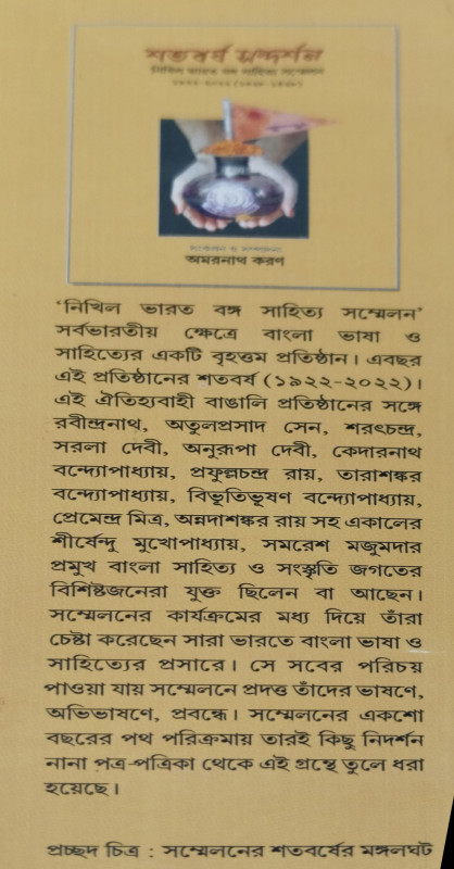 SHATABARSHA SANDARSHAN : NIKHIL BHARAT BANGA SAHITYA SAMMELAN 1922-2022 (1328-1428)