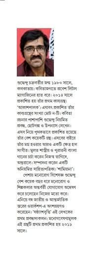 শুদ্ধেন্দু চক্রবর্তীর জন্ম ১৯৮০ সালে, কলকাতায়। কবিতাজগতে প্রবেশ লিটল। ম্যাগাজিনের হাত ধরে। ২০১৪ সালে প্রকাশিত হয় তাঁর প্রথম কাব্যগ্রন্থ। 'আকাশপালক'। এযাবৎ প্রকাশিত তাঁর কাব্যগ্রন্থের সংখ্যা মোট ন-টি। কবিতা রচনার পাশাপাশি শুদ্ধেন্দু নিয়মিত প্রবন্ধ, ছোটগল্প ও উপন্যাস লেখেন। এসব নিয়ে পৃথকভাবে প্রকাশিত হয়েছে তাঁর বেশ কয়েকটি গ্রন্থ। এসবের বাইরে তাঁর মগ্ন হওয়ার আরও একটি ক্ষেত্র হল। সংগীত। মূলত শাস্ত্রীয় ও পুরাতনী বাংলা গানের চর্চা করেন নিজস্ব তাগিদে, অন্তরালে। সম্পাদনা করেন একটি অনিয়মিত সাহিত্যপত্রিকা। 'শামিয়ানা'।