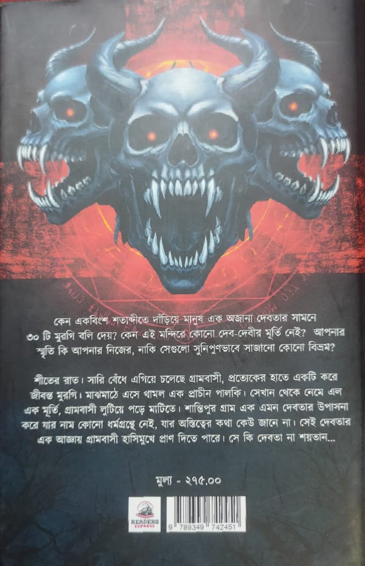 শীতের রাত। সারি বেঁধে এগিয়ে চলেছে গ্রামবাসী, প্রত্যেকের হাতে একটি করে জীবন্ত মুরগি। মাঝমাঠে এসে থামল এক প্রাচীন পালকি। সেখান থেকে নেমে এল এক মূর্তি, গ্রামবাসী লুটিয়ে পড়ে মাটিতে। শান্তিপুর গ্রাম এক এমন দেবতার উপাসনা করে যার নাম কোনো ধর্মগ্রন্থে নেই, যার অস্তিত্বের কথা কেউ জানে না। সেই দেবতার এক আজ্ঞায় গ্রামবাসী হাসিমুখে প্রাণ দিতে পারে। সে কি দেবতা না শয়তান...