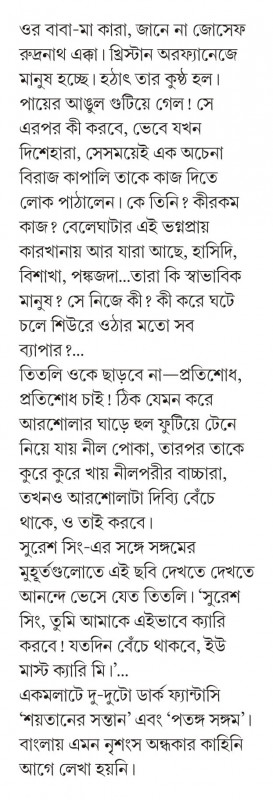 একমলাটে দু-দুটো ডার্ক ফ্যান্টাসি ‘শয়তানের সন্তান’ এবং ‘পতঙ্গ সঙ্গম। বাংলায় এমন নৃশংস অন্ধকার কাহিনি আগে লেখা হয়নি।