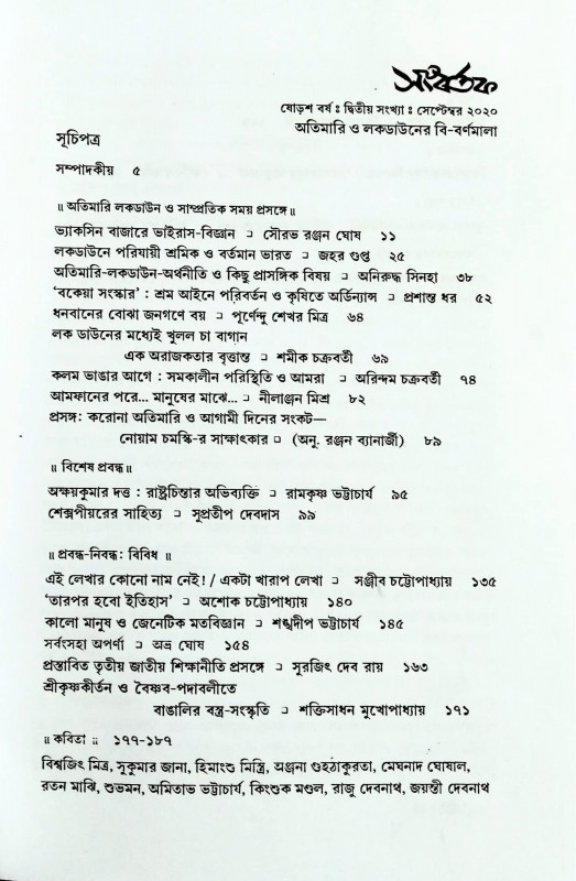 সংবর্তক : অতিমারি ও লকডাউন বিশেষ সংখ্যা (সেপ্টেম্বর ২০২০)