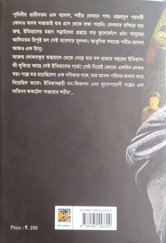 আজন্ম লোকচক্ষুর অন্তরালে থেকে গেছে যার দশ হাজার বছরের ইতিহাস। কী লুকিয়ে আছে সেই ইতিহাসের গর্ভে? সেই নিয়েই কোনো একদিন লেখক স্বয়ং গল্পে মত্ত হয়েছিলেন এক গণিকার সঙ্গে, যার আসল পরিচয় অবাক করে দিয়েছিল তাকে। ইতিহাসশ্রয়ী নন-ফিকশন এবং যুগোপযোগী গল্পের এক অভিনব ককটেল ‘সভ্যতায় শরীর’...