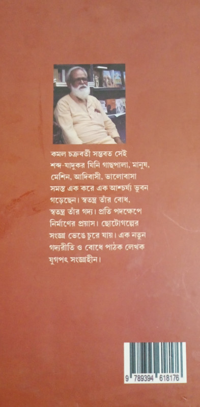 কমল চক্রবর্তী সম্ভবত সেই শব্দ-যাদুকর যিনি গাছপালা, মানুষ, মেশিন, আদিবাসী, ভালোবাসা সমস্ত এক করে এক আশ্চর্য্য ভুবন গড়েছেন। স্বতন্ত্র তাঁর বোধ, স্বতন্ত্র তাঁর গদ্য। প্রতি পদক্ষেপে নির্মাণের প্রয়াস। ছোটোগল্পের সংজ্ঞা ভেঙে চুরে যায়। এক নতুন গদ্যরীতি ও বোধে পাঠক লেখক যুগপৎ সংজ্ঞাহীন।