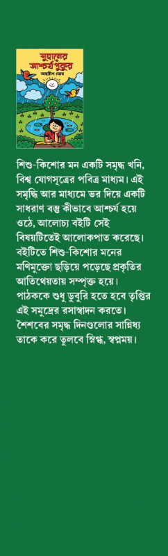 বইটিতে শিশু-কিশোর মনের মণিমুক্তো ছড়িয়ে পড়েছে প্রকৃতির আতিথেয়তায় সম্পৃক্ত হয়ে। পাঠককে শুধু ডুবুরি হতে হবে তৃপ্তির এই সমুদ্রের রসাস্বাদন করতে।