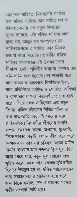 ভারতের সাহিত্যে নিম্নবর্গের সাহিত্য তথা দলিত সাহিত্য তার সাহিত্যগুণ ও জীবনচেতনায় এক নতুন দিগন্তের সূচনা করেছে। এই দলিত সাহিত্য আর ব্রাত্য নয়, অচ্ছুৎ নয় অস্পৃশ্যও নয়। সাহিত্যজগতে এ সাহিত্য তার নিজস্ব জায়গা করে নিয়েছে। ভারতীয় দলিত সাহিত্য কেবলমাত্র এই উপমহাদেশে সীমাবদ্ধ নেই। পৃথিবীর অন্যান্য দেশেও এর পঠনপাঠন শুরু হয়েছে। বহু শতাব্দী ধরে যারা অবজ্ঞার অন্ধকারে নিমজ্জিত ছিল, যারা প্রতিনিয়ত লাঞ্ছিত ও শোষিত, অশিক্ষা ও কুসংস্কার যাদের নিত্যসঙ্গী, তাদের হাত ধরে এগিয়ে চলল সাহিত্যের এক নতুন দিগন্ত। দলিত জীবনের বিভিন্ন ঘটনা ও তার ঘাত-প্রতিঘাত, এই বছয়ের গল্পে প্রতিফলিত। নিম্নবর্গীয় জীবনের সংকট, সংশয়, নৈরাজ্য, যন্ত্রণা, অপমান, দুঃখকষ্ট, টিকে থাকার লড়াই এখানে তীব হয়ে ওঠে। লেখক এবং তার সৃষ্ট চরিত্ররা 'একই মাটির নির্মাণ' হওয়ায় তার নন্দনতাত্ত্বিক মূল্য ভিন্ন মাত্রা পেয়ে যায়, নতুন মূল্যবোধের জন্ম সূচিত করে। ফলে তারা কেবল সৃষ্ট চরিত্র হিসাবে উজ্জ্বল হয় না, দলিত আন্দোলনের তথা সমাজবদলের হাতিয়ার হয়ে ওঠে। অন্য দিকে সমাজ, দেশ ও কালের সঙ্গেও গভীর সম্পর্ক তৈরি হয়।
