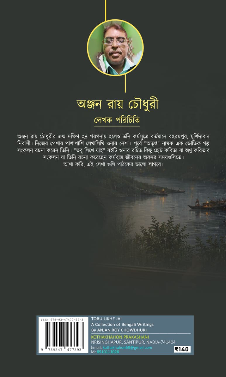 অঞ্জন রায় চৌধুরীর জন্ম দক্ষিণ ২৪ পরগনায় হলেও উনি কর্মসূত্রে বর্তমানে বহরমপুর, মুর্শিদাবাদ নিবাসী। নিজের পেশার পাশাপাশি লেখালিখি ওনার নেশা। পূর্বে "অতৃপ্ত" নামক এক ভৌতিক গল্প সংকলন রচনা করেন তিনি। "তবু লিখে যাই" বইটি ওনার রচিত কিছু ছোট কবিতা বা অণু কবিতার সংকলন যা তিনি রচনা করেছেন কর্মব্যস্ত জীবনের অবসর সময়গুলিতে। আশা করি, এই লেখা গুলি পাঠকের ভালো লাগবে।