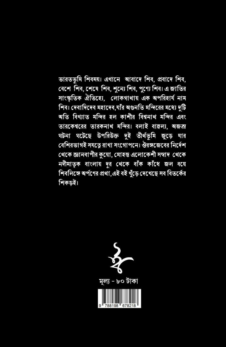 ভারতভূমি শিবময়। এখানে আবাদে শিব, প্রবাদে শিব, বেশে শিব, শেষে শিব, শূন্যে শিব, পুণ্যে শিব। এ জাতির সাংস্কৃতিক ঐতিহ্যে, লোকগাথায় এক অপরিহার্য নাম শিব। দেবাদিদেব মহাদেব, যাঁর অগুনতি মন্দিরের মধ্যে দুটি অতি বিখ্যাত মন্দির হল কাশীর বিশ্বনাথ মন্দির এবং তারকেশ্বরের তারকনাথ মন্দির। বলাই বাহুল্য, অজস্র ঘটনা ঘটেছে উপরিউক্ত দুই তীর্থভূমি জুড়ে যার বেশিরভাগই সযত্নে রাখা সংগোপনে। ঔরঙ্গজেবের নির্দেশ থেকে জ্ঞানবাপীর কুয়ো, মোহন্ত এলোকেশী সম্বাদ থেকে নদীমাতৃক বাংলায় দূর থেকে বাঁক কাঁধে জল বয়ে শিবলিঙ্গে অর্পণের প্রথা, এই বই খুঁড়ে দেখেছে সব বিতর্কের শিকড়ই।