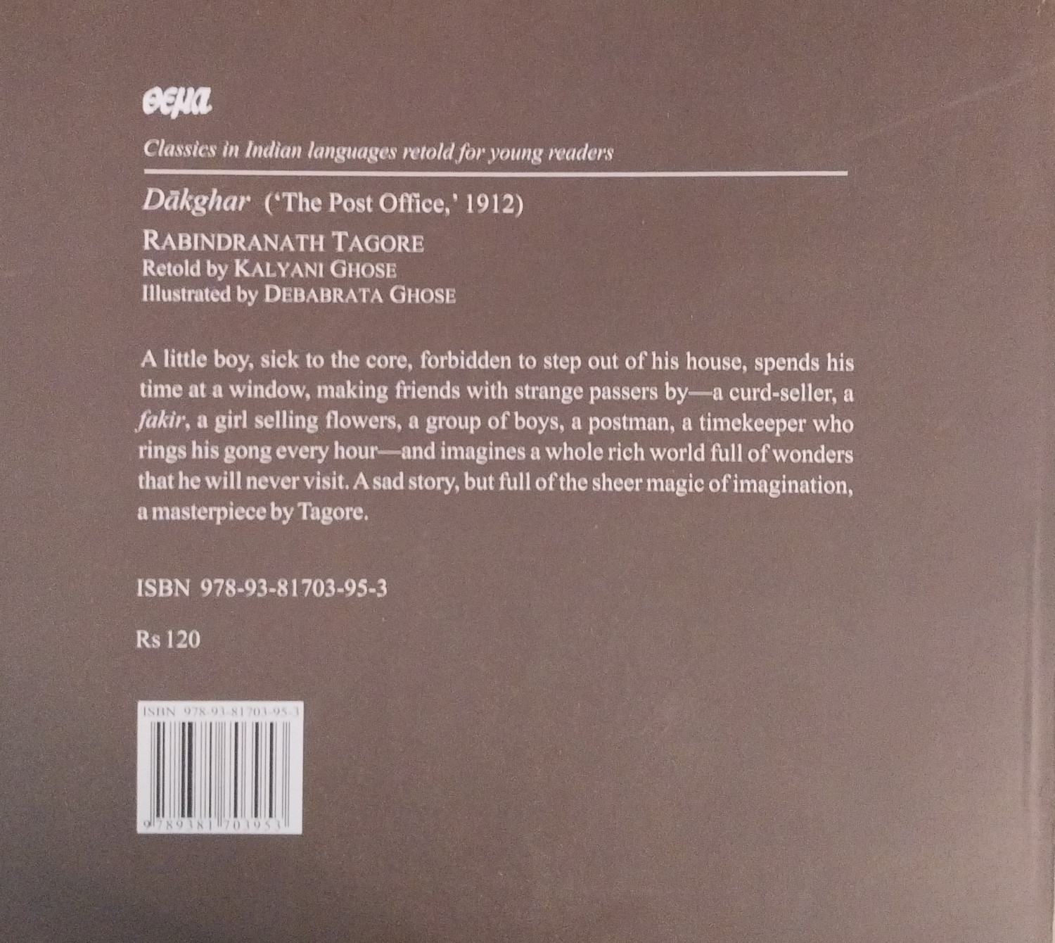 A little boy, sick to the core, forbidden to step out of his house, spends his time at a window, making friends with strange passers by a curd-seller, a fakir, a girl selling flowers, a group of boys, a postman, a timekeeper who rings his gong every hour-and imagines a whole rich world full of wonders that he will never visit. A sad story, but full of the sheer magic of imagination, a masterpiece by Tagore.