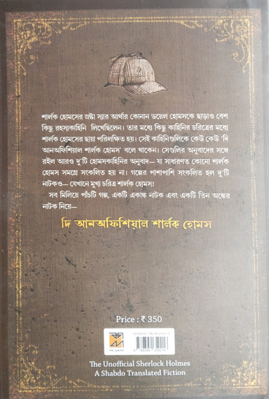 শার্লক হোমসের স্রষ্টা স্যার আর্থার কোনান ডয়েল হোমসকে ছাড়াও বেশ কিছু রহস্যকাহিনি লিখেছিলেন। তার মধ্যে কিছু কাহিনির চরিত্রের মধ্যে শার্লক হোমসের ছায়া পরিলক্ষিত হয়। সেই কাহিনিগুলিকে কেউ কেউ ‘দি আনঅফিশিয়াল শার্লক হোমস’ বলে থাকেন। সেগুলির অনুবাদের সঙ্গে রইল আরও দু’টি হোমসকাহিনির অনুবাদ— যা সাধারণত কোনো শার্লক হোমস সমগ্রে সংকলিত হয় না। গল্পের পাশাপাশি সংকলিত হল দু’টি নাটকও— যেখানে মুখ্য চরিত্র শার্লক হোমস!