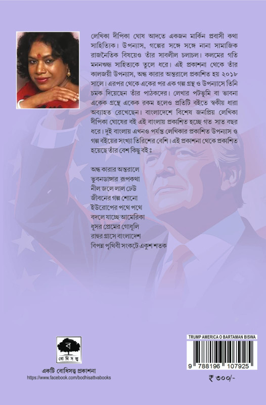 লেখিকা দীপিকা ঘোষ আদতে একজন মার্কিন প্রবাসী কথা সাহিত্যিক। উপন্যাস, গল্পের সঙ্গে সঙ্গে নানা সামাজিক রাজনৈতিক বিষয়েও তাঁর সাবলীল চলাচল। কলমের গতি মননঋদ্ধ সাহিত্যকে তুলে ধরে। এই প্রকাশনা থেকে তাঁর কালজয়ী উপন্যাস, অন্ধ কারার অন্তরালে প্রকাশিত হয় ২০১৮ সালে। এরপর থেকে একের পর এক গল্প গ্রন্থ ও উপন্যাসে তিনি চমক দিয়েছেন তাঁর পাঠকদের। লেখার পটভূমি বা ভাবনা একেক গ্রন্থে একেক রকম হলেও প্রতিটি বইতে স্বকীয় ধারা অব্যাহত রেখেছেন। বাংলাদেশে বিশেষ জনপ্রিয় লেখিকা দীপিকা ঘোষের বই এই বাংলায় প্রকাশিত হচ্ছে গত সাত বছর ধরে। দুই বাংলায় এখনও পর্যন্ত লেখিকার প্রকাশিত উপন্যাস ও গল্প বইয়ের সংখ্যা তিরিশের বেশি।