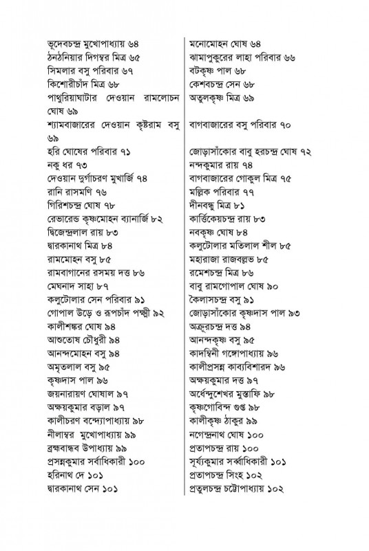 সামাজিকভাবে ওপর তলার মানুষরা যারা সেসময় আমোদ আহ্লাদের সাথে সমাজের নীতি নির্ধারনও করেছেন। তাদের কেন্দ্র করে একদিকে বাবু কালচার যেমন গড়ে উঠেছিল, তেমনভাবে সামাজিক আন্দোলন বা শিক্ষার প্রসারও ঘটেছিল বলা চলে। আধুনিক বাঙালির সর্বজনীন পরিচয় হিসেবে উনবিংশ শতাব্দীকে চিহ্নিত করা যায়। রামমোহন থেকে ঈশ্বরচন্দ্র বা বঙ্কিম থেকে রবীন্দ্রনাথ, রামকৃষ্ণ বিবেকানন্দ থেকে গিরিশচন্দ্র অথবা আশুতোষ মুখোপাধ্যায় বা রামদুলাল দেবের মতো আইকনরা ছিলেন এই যুগের মানুষ তথা রত্ন। বাঙালির রেনেসাঁস সর্বস্তরে ছড়িয়ে পড়েনি এমন একটা অভিযোগ উঠলেও আজ আমাদের তাকে অস্বীকার করার উপায় নেই। বর্তমান গ্রন্থে কলকাতার সেইসব উল্লেখযোগ্য ব্যক্তিত্বের কথা সংক্ষেপে উল্লেখ করা হল। সময়কালের দিক থেকে সামান্য এদিকওদিক হয়ে গেছে কিছু বিখ্যাত মানুষকে অন্তর্ভুক্ত করার জন্যে। বিখ্যাতদের অনেককে নিয়ে এক বা বহু গ্রন্থ নিশ্চিতভাবে রচিত হয়েছে। আবার অনেকেই থেকে গেছেন খানিকটা আবডালে। পাঠক সাধারণের জন্যে এক মলাটে দ্বি শতাধিক ব্যক্তি বা পরিবারের বর্ণময় জীবনের কথা উল্লেখ করা গেল। আজকের পাঠক যাতে বাঙালির উনবিংশ শতাব্দীর গৌরবের সাথে পরিচিত হতে পারেন।