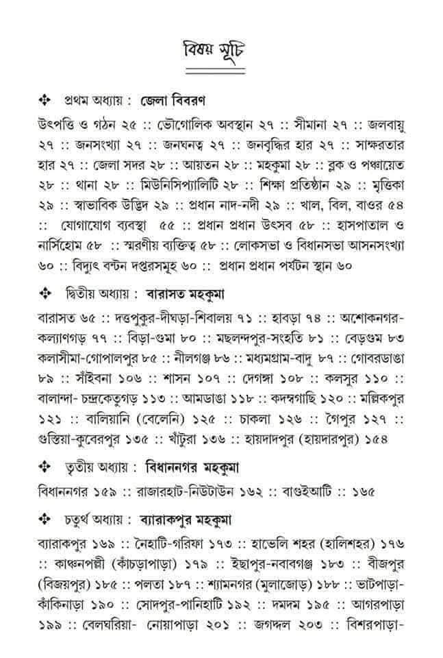 প্রাচীন ঐতিহ্যবাহী উত্তর চব্বিশ পরগণা জেলার বিভিন্ন ধর্মীয় উপাসনালয়, স্থাপত্য,প্রত্নক্ষেত্র, লোকসংস্কৃতি ও সভ্যতার নির্বাক সাক্ষী। প্রাক্ মৌর্য, বৌদ্ধ সভ্যতা থেকে শুরু করে তিতুমীরের বিদ্রোহ, স্বাধীনতা যুদ্ধ, সিপাহী বিদ্রোহের পীঠস্থল। বাংলার প্রাচীনতম রাজধানীর বিবরণ, মোঘল, মগ - হার্মাদ, ইংরেজ ফিরিঙ্গি, জমিদারদের রণরক্ত লাঞ্ছিত এই অঞ্চলের বিস্তৃত বিবরণ রয়েছে এই গ্রন্ত্র।