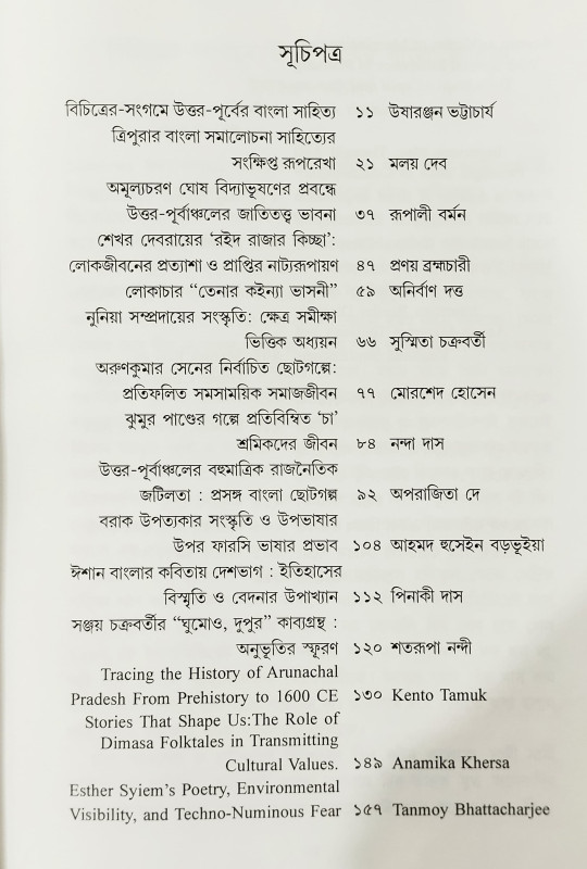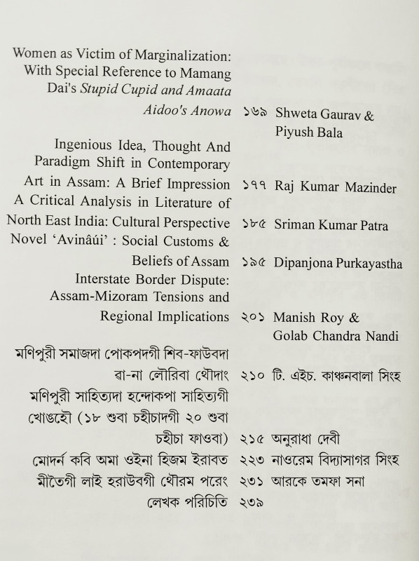 উত্তর-পূর্ব ভারতের বিভিন্ন রাজ্যে অসংখ্য জনগোষ্ঠীর বাস। সকলের ভাষা, সংস্কৃতি পৃথক হলেও তারা একই অঞ্চলে সকলে মিলেমিশে থাকে। কবি, কথাসাহিত্যিক, সমাজতাত্ত্বিক এইসব জনগোষ্ঠীর বিচিত্র ভাষা-সাংস্কৃতিক-অর্থনৈতিক তথা সামাজিক পরিকাঠামো নিয়ে সৃষ্টি করে চলেছেন নতুন নতুন ক্ষেত্র। সেইসব জাতিগোষ্ঠীর সুখ-দুঃখ, জীবনসংগ্রাম, আনন্দ-উৎসব, সীমান্ত সমস্যা নিয়ে গোষ্ঠীদ্বন্দ্ব ইত্যাদি অনেক বিষয়, ক্ষেত্র ভিত্তিক সমীক্ষা ইত্যাদি নির্ভর করেই গবেষকরা প্রবন্ধ লিখেছেন এই গ্রন্থে।