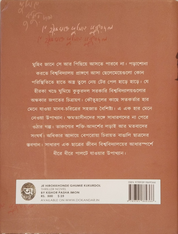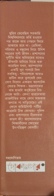 ‘সিনিয়র ভাই'রা ক্যাম্পাসের ভেতরে নিজেদের হলে ডেকে আনল ছেলেটাকে। তারপর ঘণ্টা কয়েক ধরে ওকে খুব ভালোমতো বুঝিয়ে দেওয়া হল, নাক টিপলে যাদের দুধ বের হয়ে যায়, তাদের মুখে বেশি কথা মানায় না। বন্ধুকে ছুরি মারা হয়েছে, তাতে কী এমন হয়েছে? গত চল্লিশ বছর ধরে এমনটাই চলে আসছে। অতীতে যখন ছুরি মারা হয়েছে, এই বিশ্ববিদ্যালয়ের ছাত্রছাত্রীরা হাসিমুখে, যাকে বলে বুক চিতিয়ে ছুরি খেয়েছে। এটা নিয়ে হই-হট্টগোলের এমন কী আছে এটাই তো স্পষ্ট না।