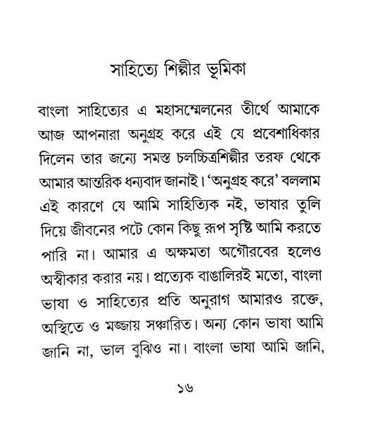 সাহিত্যে শিল্পীর ভূমিকা প্রবন্ধে বোম্বাই থেকে যখন ডাক এসেছে তখন একথাই ভেবেছি, যে বাংলা ছবির কাছ থেকে এত পেলাম তাঁকে ছেড়ে গেলে নিজেকে ক্ষমা করব কী করে? ভাগ্যের অকৃপণ করের প্রচুর দাক্ষিণ্য তো এখানে থেকেই পাচ্ছি। কিন্ত সেদিনেও কৈ একবারও তো মনে হয়নি আমি অদ্বিতীয়া অতুলনীয়া। এবং এটাও ভাবতে সাহস পাইনি যে, আজ সবাইকে উপেক্ষা করার শক্তি আমার জন্মেছে। বরঞ্চ এই সত্যটিই নিঃসঙ্গশয়েমেনে নিয়েছি যে, বড় স্টার তৈরি করার ক্ষমতা চিত্রপরিচালক রাখেন। অবশ্য এক্ষেত্রে অভিনেতা অভিনেত্রীর নিজের প্রতিভা থাকা চাই। সকলকেই পরিচালক বড় শিল্পী রূপে গড়ে তুলতে পারেন না। পরিচালক শিল্পীর প্রতিভা বিকাশের পথটি প্রশস্ত করে দেন।...যদি কোন স্টার ভাবেন যে আমাকে নিয়েই চিত্রপরিচালক সার্থক, তবে তার মত ভ্রান্ত আর কেউ নেই। একটি কথা মনে রাখা উচিত যে এমন পরিচালক বিগত দিনেও ছিলেন ও আজও আছেন যাঁরা বড় স্টার না নিয়েও অনেক সফল ও জনপ্রিয় ছবি তৈরি করেছেন এবং করছেন।