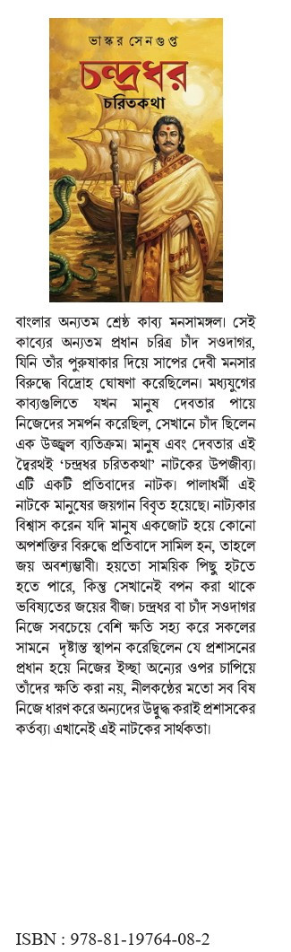 বাংলার অন্যতম শ্রেষ্ঠ কাব্য মনসামঙ্গল। সেই কাব্যের অন্যতম প্রধান চরিত্র চাঁদ সওদাগর, যিনি তাঁর পুরুষাকার দিয়ে সাপের দেবী মনসার বিরুদ্ধে বিদ্রোহ ঘোষণা করেছিলেন। মধ্যযুগের কাব্যগুলিতে যখন মানুষ দেবতার পায়ে নিজেদের সমর্পন করেছিল, সেখানে চাঁদ ছিলেন এক উজ্জ্বল ব্যতিক্রম। মানুষ এবং দেবতার এই দ্বৈরথই 'চন্দ্রধর চরিতকথা' নাটকের উপজীব্য। এটি একটি প্রতিবাদের নাটক। পালাধর্মী এই নাটকে মানুষের জয়গান বিবৃত হয়েছে। নাট্যকার বিশ্বাস করেন যদি মানুষ একজোট হয়ে কোনো অপশক্তির বিরুদ্ধে প্রতিবাদে সামিল হন, তাহলে জয় অবশ্যম্ভাবী। হয়তো সাময়িক পিছু হটতে হতে পারে, কিন্তু সেখানেই বপন করা থাকে ভবিষ্যতের জয়ের বীজ। চন্দ্রধর বা চাঁদ সওদাগর নিজে সবচেয়ে বেশি ক্ষতি সহ্য করে সকলের সামনে দৃষ্টান্ত স্থাপন করেছিলেন যে প্রশাসনের প্রধান হয়ে নিজের ইচ্ছা অন্যের ওপর চাপিয়ে তাঁদের ক্ষতি করা নয়, নীলকন্ঠের মতো সব বিষ নিজে ধারণ করে অন্যদের উদ্বুদ্ধ করাই প্রশাসকের কর্তব্য। এখানেই এই নাটকের সার্থকতা।
