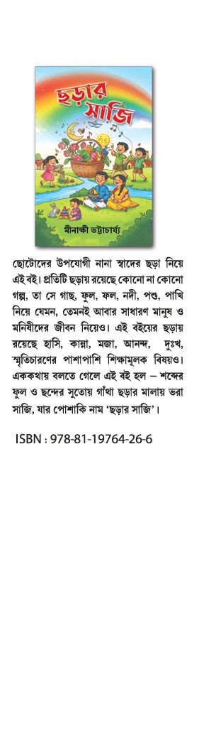 ছোটোদের উপযোগী নানা স্বাদের ছড়া নিয়ে এই বই। প্রতিটি ছড়ায় রয়েছে কোনো না কোনো গল্প, তা সে গাছ, ফুল, ফল, নদী, পশু, পাখি নিয়ে যেমন, তেমনই আবার সাধারণ মানুষ ও মনিষীদের জীবন নিয়েও। এই বইয়ের ছড়ায় রয়েছে হাসি, কান্না, মজা, আনন্দ, দুঃখ, স্মৃতিচারণের পাশাপাশি শিক্ষামূলক বিষয়ও।
