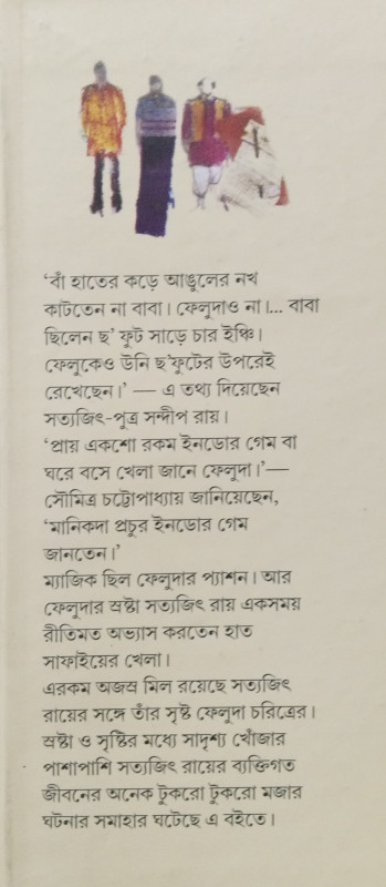 এরকম অজস্র মিল রয়েছে সত্যজিৎ রায়ের সঙ্গে তাঁর সৃষ্ট ফেলুদা চরিত্রের। স্রষ্টা ও সৃষ্টির মধ্যে সাদৃশ্য খোঁজার পাশাপাশি সত্যজিৎ রায়ের ব্যক্তিগত জীবনের অনেক টুকরো টুকরো মজার ঘটনার সমাহার ঘটেছে এ বইতে।
