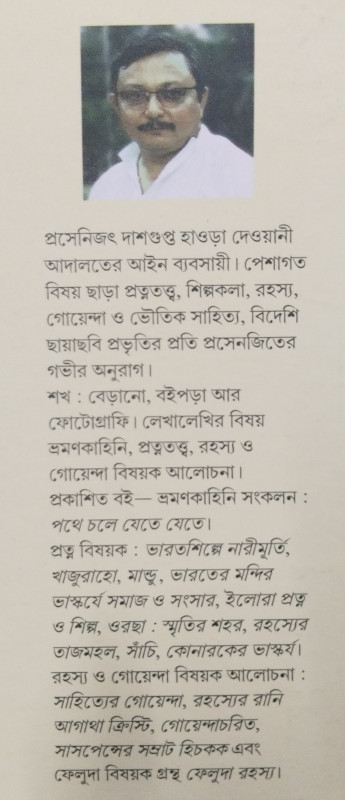 প্রসেনিজৎ দাশগুপ্ত হাওড়া দেওয়ানী আদালতের আইন ব্যবসায়ী। পেশাগত বিষয় ছাড়া প্রত্নতত্ত্ব, শিল্পকলা, রহস্য, গোয়েন্দা ও ভৌতিক সাহিত্য, বিদেশি ছায়াছবি প্রভৃতির প্রতি প্রসেনজিতের গভীর অনুরাগ।