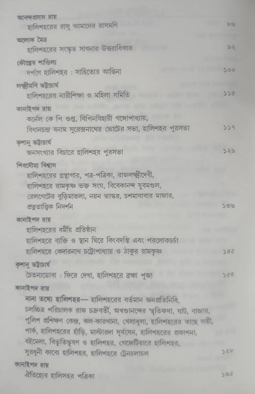 'হালিশহর' নাকি 'হালিসহর' এই বানান বিতর্ক চলতে থাকায় গ্রন্থে দু'টি বানানই বজায় রাখা হয়েছে। হালিশহর অংশে অমূল্যকুমার গঙ্গোপাধ্যায়-এর 'পুরাবৃত্ত' শীর্ষক রচনাটি 'দি হালিসহর গুডউইল ফ্রেটারনিটি'র তৎকালীন সম্পাদক কার্তিক চক্রবর্তী 'কুমারহট্ট হালিসহর' গ্রন্থ থেকে পুনর্মুদ্রণের অনুমতি দিয়েছেন। এই গ্রন্থে যাঁরা লিখেছেন তাঁরা প্রত্যেকেই আঞ্চলিক ইতিহাস সমীক্ষক। এঁদের সকলের কাছেই আমি কৃতজ্ঞ।