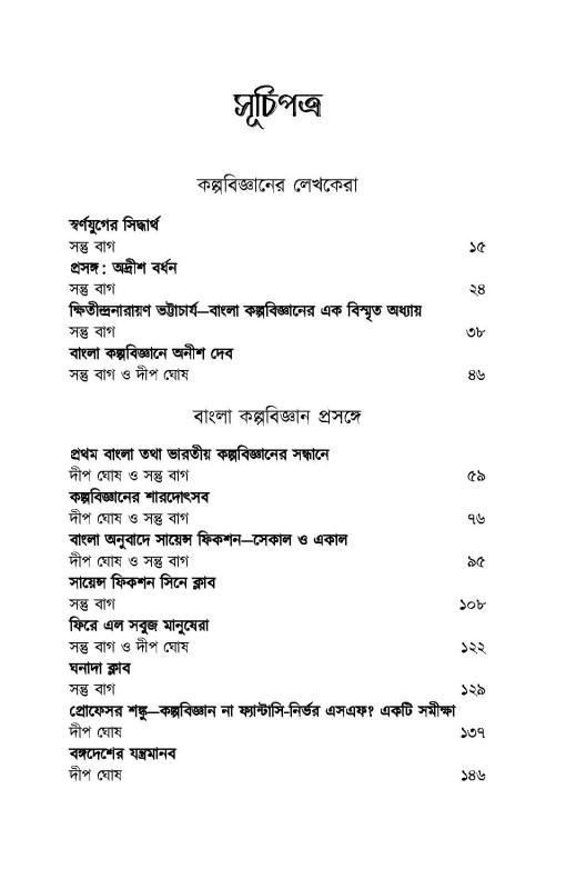 কল্পবিজ্ঞান সাহিত্যের ইতিহাস বাংলায় শতাব্দীপ্রাচীন হলেও সেই ইতিহাস, তার লেখক এবং বিভিন্ন উপধারা নিয়ে গবেষণামূলক কাজ বা তথ্যনিষ্ট বই বাংলাতে এই প্রথম। আগ্রহী পাঠক ও সাহিত্য গবেষকদের জন্যে এই প্রথম বাংলা ও বিদেশি কল্পবিজ্ঞানের জগৎ নিয়ে কলম ধরলেন কল্পবিশ্ব ম্যাগাজিনের দুই অন্যতম সম্পাদক দীপ ঘোষ ও সন্তু বাগ।