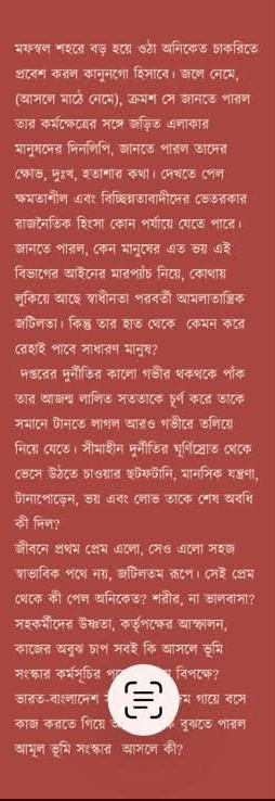 জীবনে প্রথম প্রেম এলো, সেও এলো সহজ স্বাভাবিক পথে নয়, জটিলতম রূপে। সেই প্রেম থেকে কী পেল অনিকেত? শরীর, না ভালবাসা? সহকর্মীদের উষ্ণতা, কর্তৃপক্ষের আস্ফালন, কাজের অবুঝ চাপ সবই কি আসলে ভূমি সংস্কার কর্মসূচির পা ভারত-বাংলাদেশ কাজ করতে গিয়ে আমূল ভূমি সংস্কার আসলে কী? বিপক্ষে? দম গায়ে বসে বুঝতে পারল