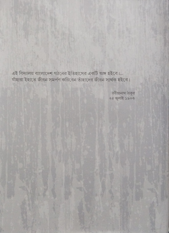 “এই বিদ্যালয় বাংলাদেশ গঠনের ইতিহাসের একটি অঙ্গ হইবে।... যাঁহারা ইহাতে জীবন সমর্পণ করিবেন তাঁহাদের জীবন সার্থক হইবে।"---রবীন্দ্রনাথ ঠাকুর ২৫ জুলাই ১৯০৩