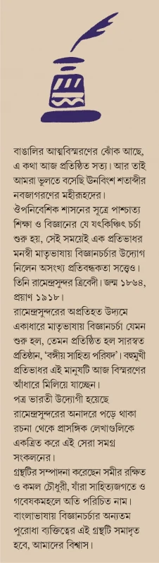 ঔপনিবেশিক শাসনের সূত্রে পাশ্চাত্য শিক্ষা ও বিজ্ঞানের যে যৎকিঞ্চিৎ চর্চা শুরু হয়, সেই সময়েই এক প্রতিভাধর মনস্বী মাতৃভাষায় বিজ্ঞানচর্চার উদ্যোগ নিলেন অসংখ্য প্রতিবন্ধকতা সত্ত্বেও। তিনি রামেন্দ্রসুন্দর ত্রিবেদী। জন্ম ১৮৬৪, প্রয়াণ ১৯১৮।