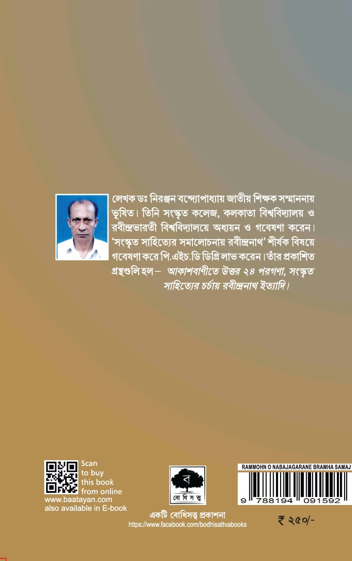 [লেখক ডঃ নিরঞ্জন বন্দ্যোপাধ্যায় জাতীয় শিক্ষক সম্মাননায় ভূষিত। তিনি সংস্কৃত কলেজ, কলকাতা বিশ্ববিদ্যালয় ও রবীন্দ্রভারতী বিশ্ববিদ্যালয়ে অধ্যয়ন ও গবেষণা করেন। 'সংস্কৃত সাহিত্যের সমালোচনায় রবীন্দ্রনাথ' শীর্ষক বিষয়ে গবেষণা করে পি.এইচ.ডি ডিগ্রি লাভ করেন। তাঁর প্রকাশিত গ্রন্থগুলি হল- আকাশবাণীতে উত্তর ২৪ পরগণা, সংস্কৃত সাহিত্যের চর্চায় রবীন্দ্রনাথ ইত্যাদি।]
