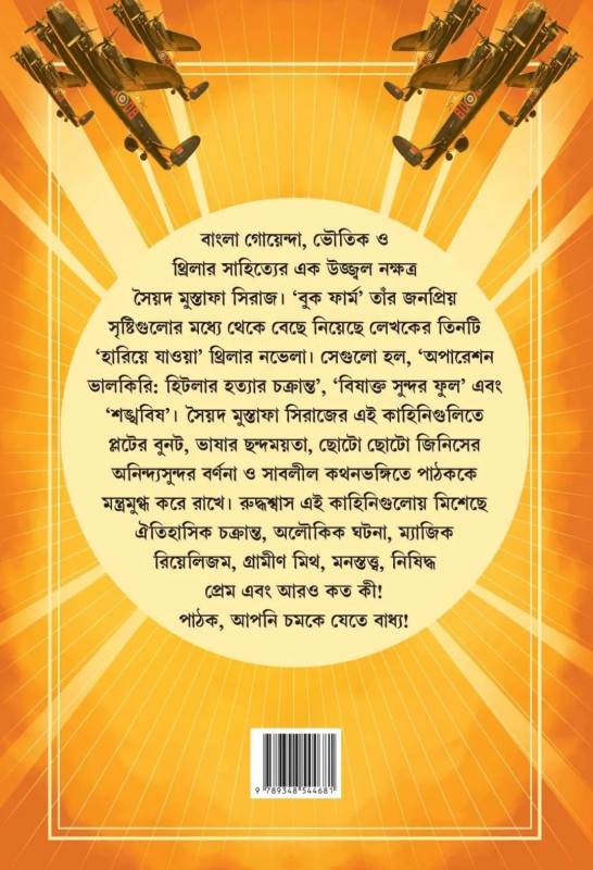 বাংলা গোয়েন্দা, ভৌতিক ও থ্রিলার সাহিত্যের এক উজ্জ্বল নক্ষত্র সৈয়দ মুস্তাফা সিরাজ। ‘বুক ফার্ম’ তাঁর জনপ্রিয় সৃষ্টিগুলোর মধ্যে থেকে এই বইয়ে বেছে নিয়েছে লেখকের তিনটে ‘হারিয়ে যাওয়া’ থ্রিলার নভেলা। সেগুলো হল, ‘অপারেশন ভালকিরি: হিটলার হত্যার চক্রান্ত’, ‘বিষাক্ত সুন্দর ফুল’ এবং ‘শঙ্খবিষ’। সৈয়দ মুস্তাফা সিরাজের এই কাহিনি প্লটের বুনট, ভাষার ছন্দময়তা ও সাবলীল কথনভঙ্গিতে পাঠককে মন্ত্রমুগ্ধ করে রাখে।