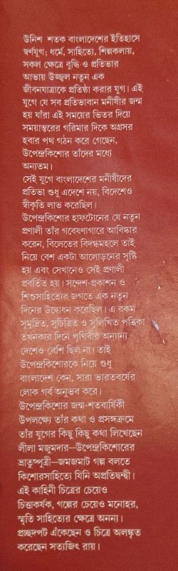 উপেন্দ্রকিশোর জন্ম-শতবার্ষিকী উপলক্ষ্যে তাঁর কথা ও প্রসঙ্গক্রমে তাঁর যুগের কিছু কিছু কথা লিখেছেন লীলা মজুমদার-উপেন্দ্রকিশোরের ভ্রাতুষ্পুত্রী-জমজমাট গল্প বলতে কিশোরসাহিত্যে যিনি অপ্রতিদ্বন্দ্বী। এই কাহিনী চিত্রের চেয়েও চিত্তাকর্ষক, গল্পের চেয়েও মনোহর, স্মৃতি সাহিত্যের ক্ষেত্রে অনন্য। প্রচ্ছদপট এঁকেছেন ও চিত্রে অলঙ্কৃত করেছেন সত্যজিৎ রায়।